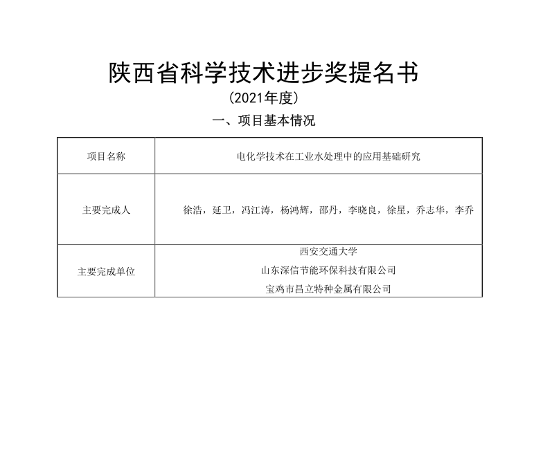 根據陜西省科技獎勵有關要求,現將我司2020年度陜西省科技獎合作申報項目 “電化學技術在工業水處理中的應用基礎研究”信息在公司主頁(http://m.razj.cn/)上公布,向全校征詢異議。